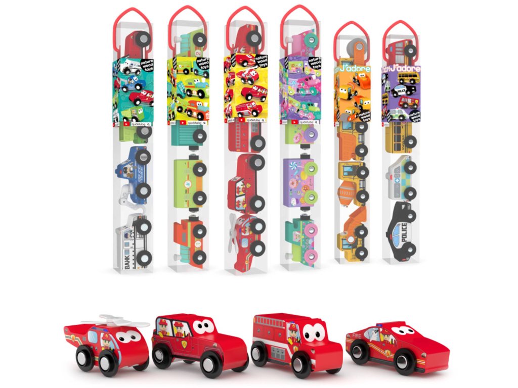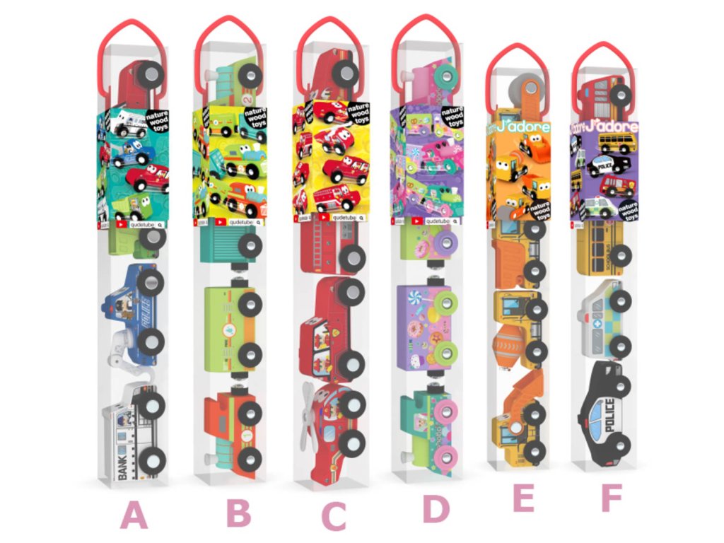DŘEVO Baby autíčka set 4ks v tubě 6 druhů *DŘEVĚNÉ HRAČKY*