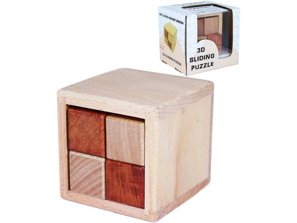 DŘEVO Hlavolam posuvný 3D krychle v krabičce *DŘEVĚNÉ HRAČKY*