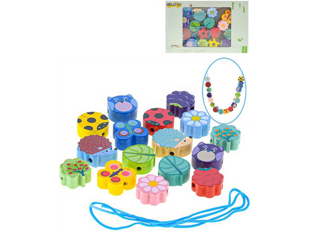 DŘEVO Navlékací korálky set 16ks s provázkem les *DŘEVĚNÉ HRAČKY*