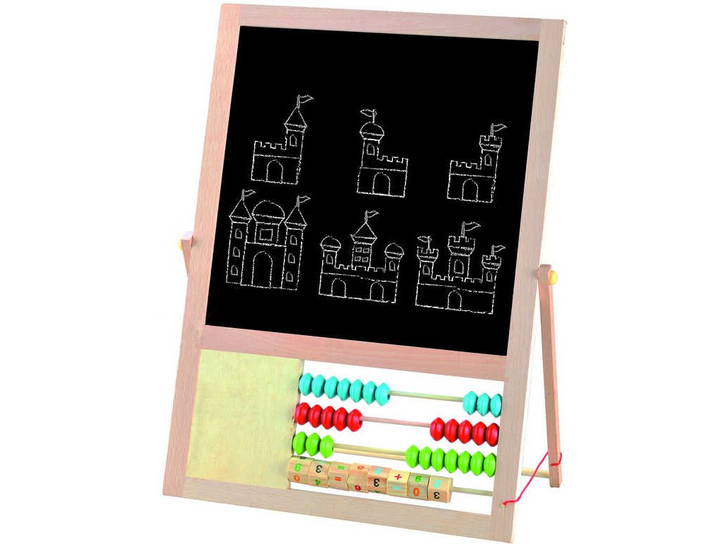 Tato oboustranná tabule v dřevěném rámu je skvělou naučnou vychytávkou pro menší i větší děti. Multifunkční tabule poskytne vašemu dítěti skvělou zábavu. Sada obsahuje také dřevěné magnetky s čísly a
