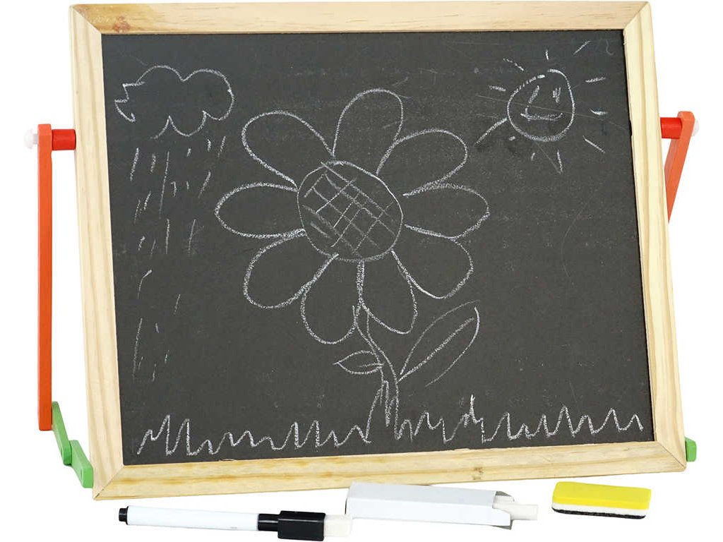 Praktická, malá, stolní dřevěná tabule, s oboustranným využitím. Na jednu stranu lze psát a kreslit křídami, druhá strana je magnetická a lze na ni psát popisovačem nebo umístit magnetické kartičky s písmenky