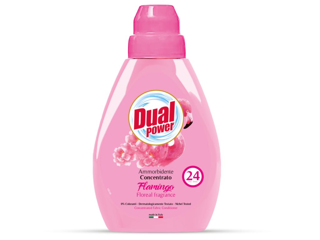 Koncentrovaná aviváž Dual Flamingo obsahuje aktivní mikro částečky parfému. Díky jejímu exkluzivnímu složení dodává prádlu měkkost a intenzivní květinovou vůni, jež vydrží po dobu až 12 týdnů (v případě prádla uloženého v šatníku). Obsahuje složky pro snadné žehlení, vlákna se nelámou a neničí. Dermatologicky testováno, testován na nikl.