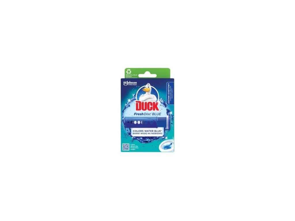 WC čistič Duck Fresh Discs Blue nabízí inovativní řešení oproti klasickým WC blokům. Tento gelový čistič s modrým barvivem obarvuje vodu při každém spláchnutí, což pomáhá účinně bojovat proti usazování vodního kamene a zajišťuje dlouhotrvající svěžest. Díky své speciální formulaci poskytuje dlouhodobý účinek a zároveň nabízí hygienický způsob aplikace. Gelový disk Duck Fresh Discs Blue udržuje vaši toaletu svěží a čistou po dlouhou dobu.