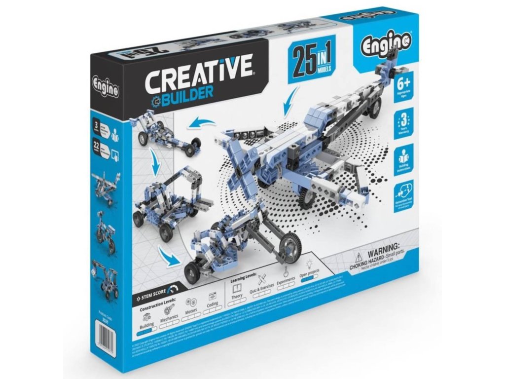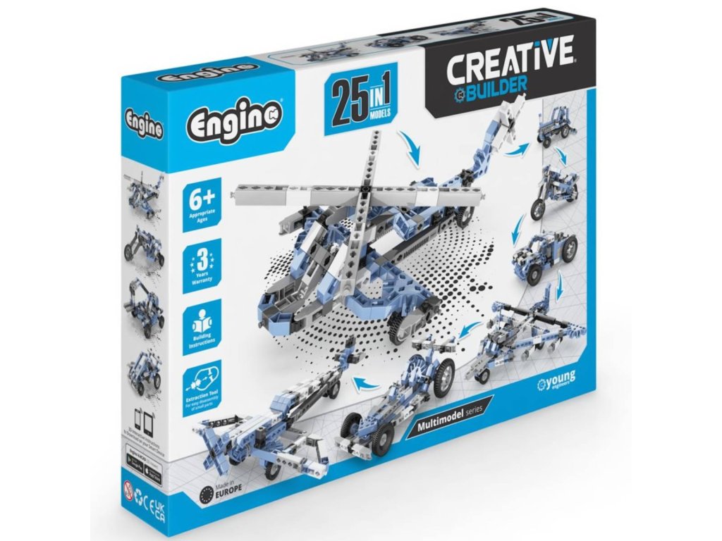Stavebnice Engino Creative Builder 25 modelů je určena dětem od 6 let a nabízí širokou škálu možností pro rozvíjení kreativity a manuální zručnosti. Díky této stavebnici lze sestavit až 25 různých modelů, které zahrnují například vrtulník, motocykl, auto nebo bagr. Stavebnice je vyrobena z kvalitních plastových dílků v kombinaci modré, šedé, černé a bílé barvy, které jsou pevné a zároveň bezpečné pro děti.