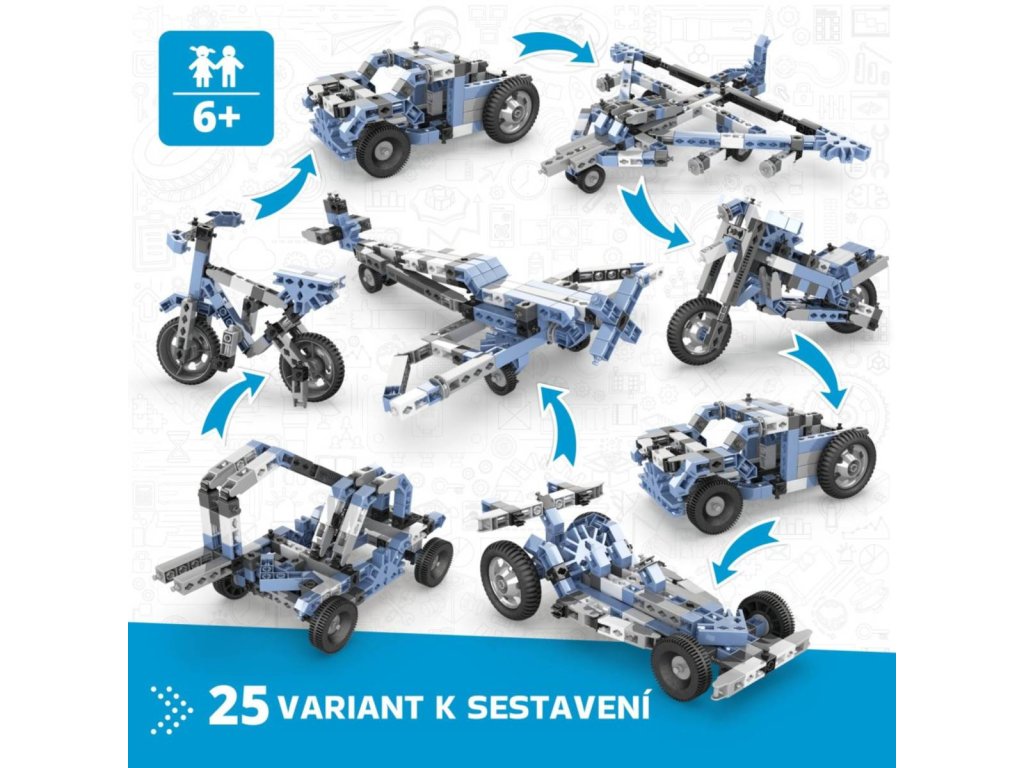 Stavebnice řady Engino Creative Builder umožňují snadno a rychle přetvářet jeden model na druhý. Vytvoříte 25 modelů. Zdarma aplikace Engino kidCAD®.