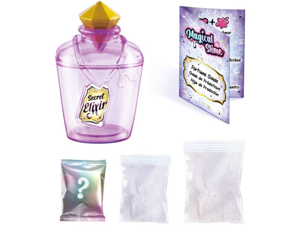 So Slime Magický elixír představuje kreativní sadu určenou dětem od šesti let, která kombinuje zábavu s tajemstvím a překvapením. Tento produkt je součástí kategorie kreativních hraček a modelín/plastelíny, určený k vytvoření vlastního magického slizu, který navíc odhalí budoucnost pomocí speciální karty předpovědí. Každý balíček obsahuje několik sypkých prášků, které je potřeba smíchat s vodou a následně přidat přísady, aby vznikl barevný a lesklý sliz s dekorativními třpytkami nebo konfety v různých tvarech.