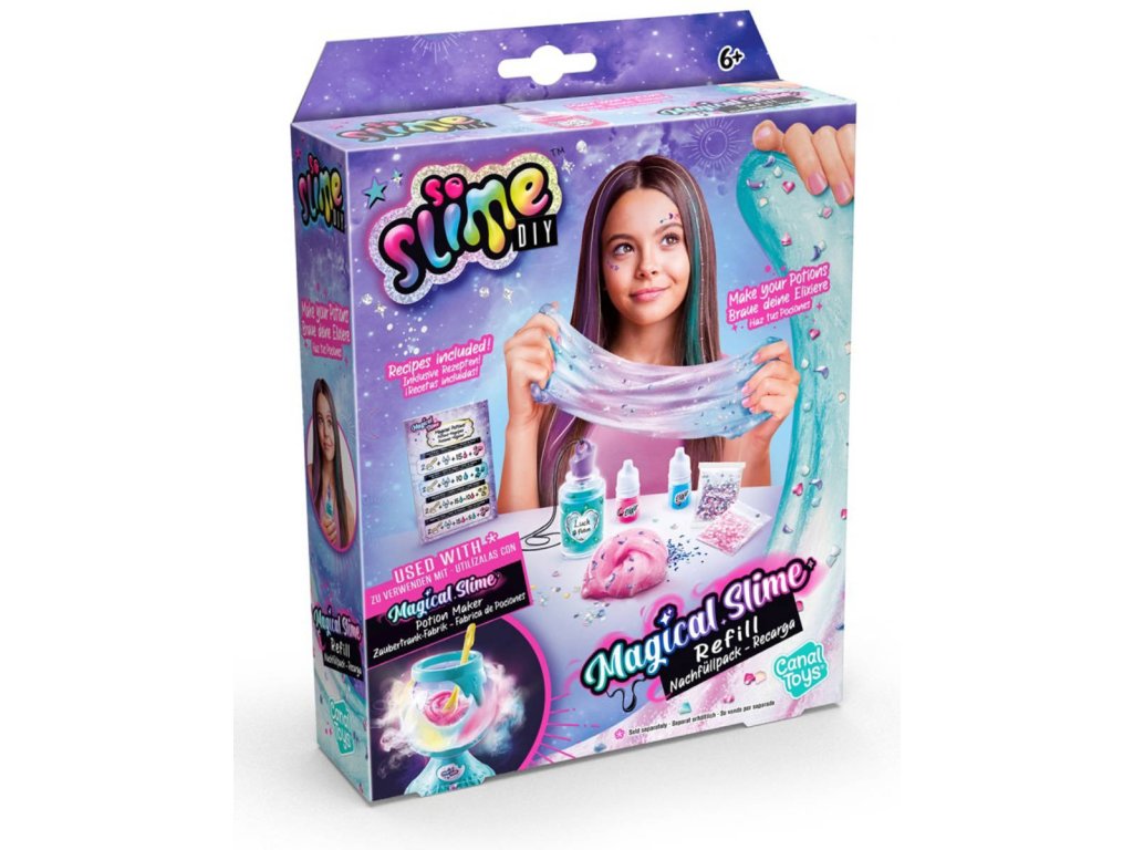 Novinka So Slime Magický elixír – náplň zabaví tvořivé ruce a pomůže vám vyrobit úžasné elixíry. Smíchejte prášek magického slizu s vodou a přidejte přísady a dekorace! Podle receptu si vyrobíte magický elixír.