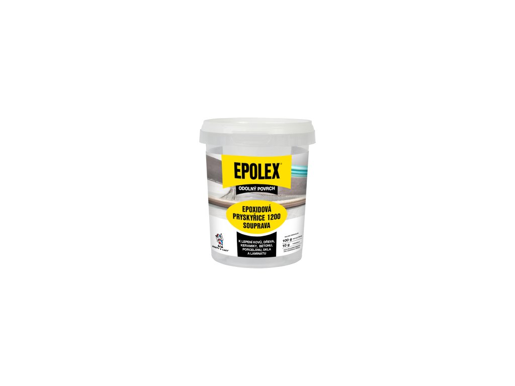 EPOXY SOUPRAVA k drobným opravám a lepení kovů, skla, keramiky, porcelánu, dřeva, betonu atd. Do pryskyřice se přidává 6,5 % tvrdidla P 11. Pokud se kompozice pro vytvrzení opakovaně omyje teplou vodou a poté 3% roztokem kyseliny citronové, vyhovuje podmínkám pro přímý styk s potravinami a pitnou vodou. Následně jsou tmelená místa přetíratelná běžnými nátěrovými hmotami. Složení a charakteristika výrobku: Epoxidová pryskyřice