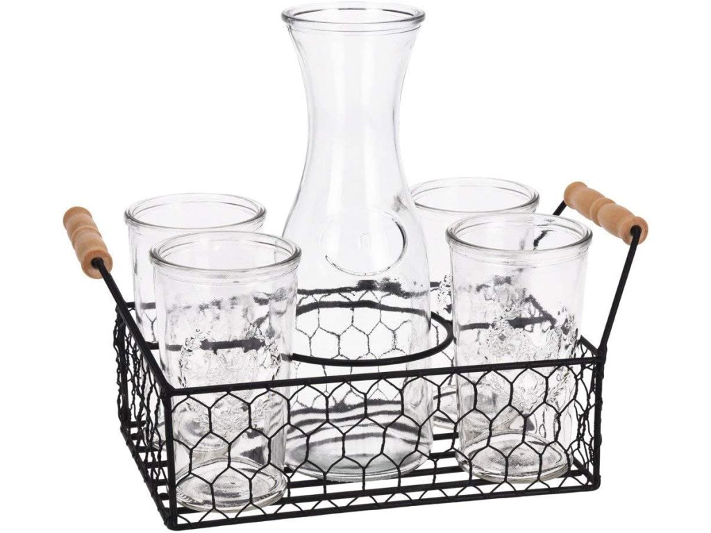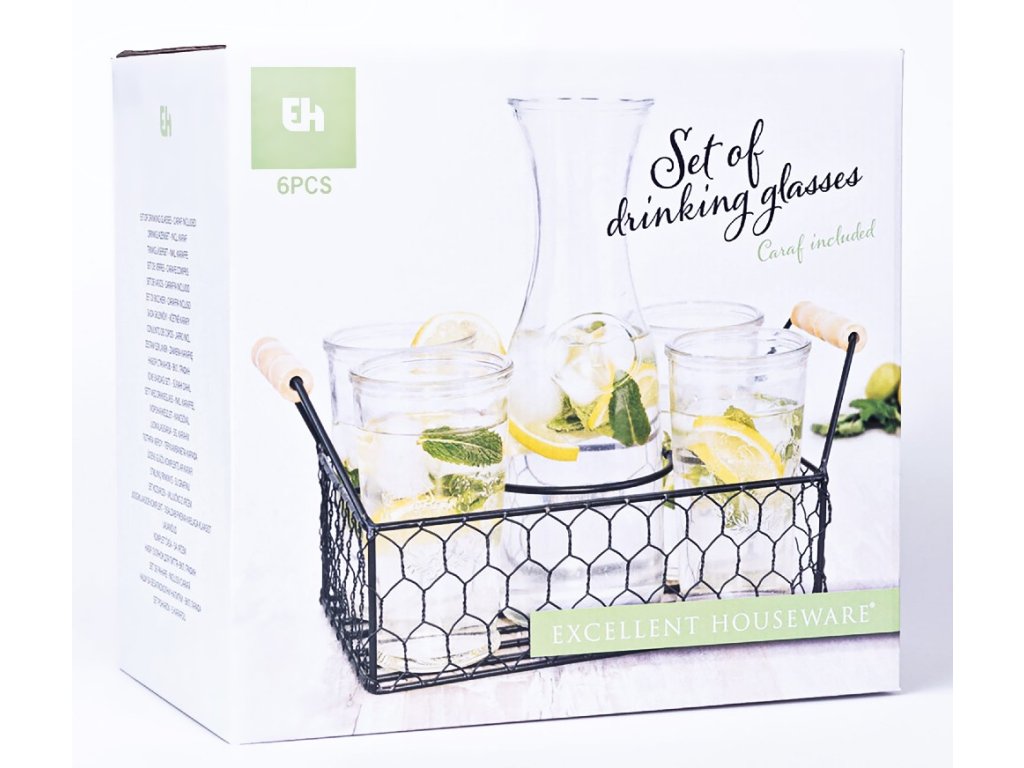 EXCELLENT HOUSEWARE Sklenice na limonádu s karafou a košíkem sada 6 ks 1l KO-CD1001110