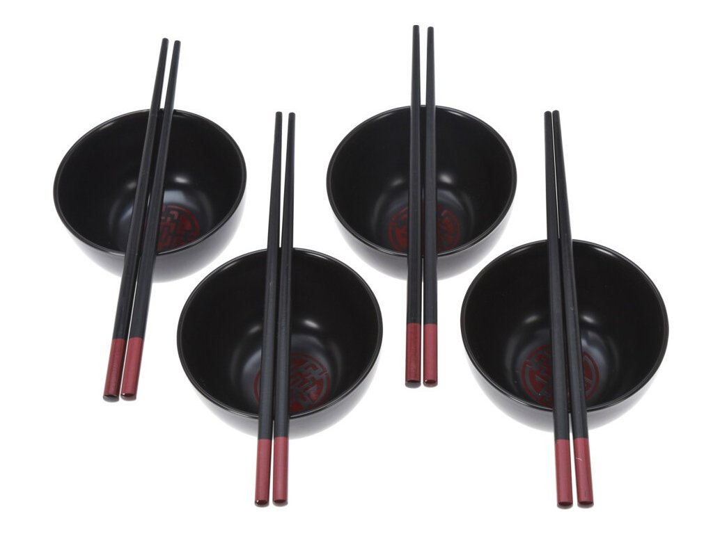 - sushi set pro servírování sushi doma- vhodné také na polévku, salát, omáčku- materiál: keramika, bambusové dřevo- 4 černé keramické servírovací misky- 4 páry hůlek z bambusového dřeva- misky mohou do myčky nádobí- perfektní dárek pro milovníky sushi- sada 8 ks obsahuje:- 4 x miska 10,5 x 5,3 cm- 4 x pár bambusových hůlek 24 cm- barva: černá / dřevo- značka: Excellent Houseware