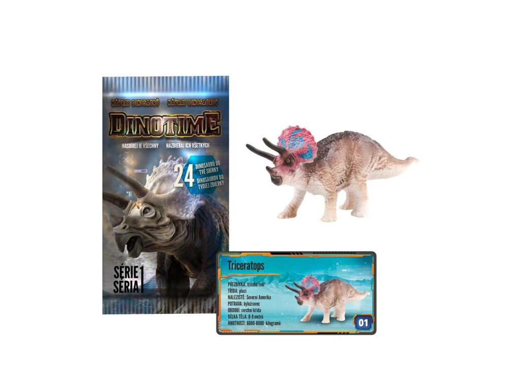 DINOTIME - To jsou figurky dinosaurů v jednotlivých balení s kartou postavy. Nasbírejte všech 24 druhů různých dinosaurů DINOTIME, dozvíte se o nich spoustu informací. Figurky mají kvalitní zpracování a pestré barvy. Vhodné pro děti od 3 let.