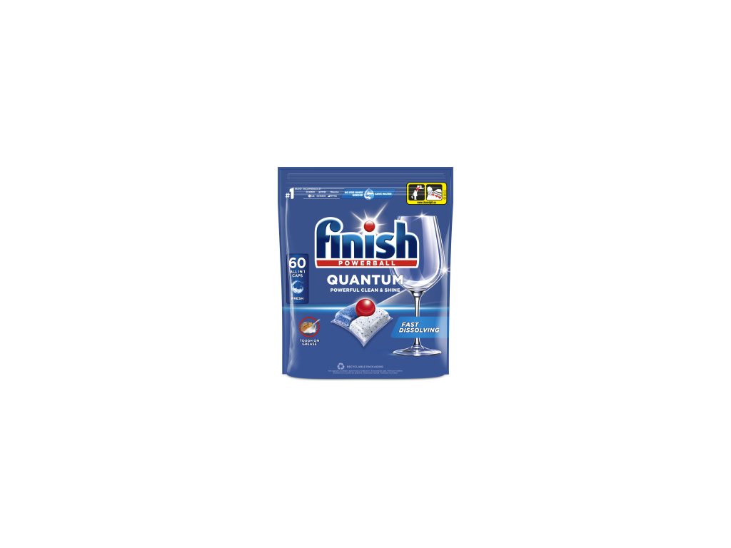 Finish Quantum All in 1 pro naprostou čistotu a diamantový lesk vždy a hned napoprvé. Tříkomorové složení odstraňuje všechny druhy nečistot pocházejících od jídla - dokonce i bez předmývání. Značka Finish je vázána slibem ochrany vodních zdrojů, a proto pracujeme na minimalizaci ekologické stopy, kterou zanechávají naše produkty a jejich balení.
