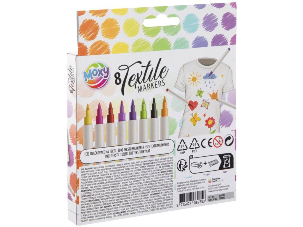 Fixy, barevné popisovače na textil, voděodolné, 8 různých barev v balení.