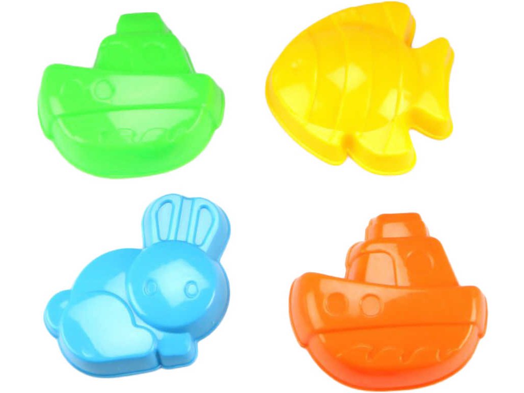 Formičky barevné set 4ks bábovičky zvířátka a dopravní prostředky na písek
