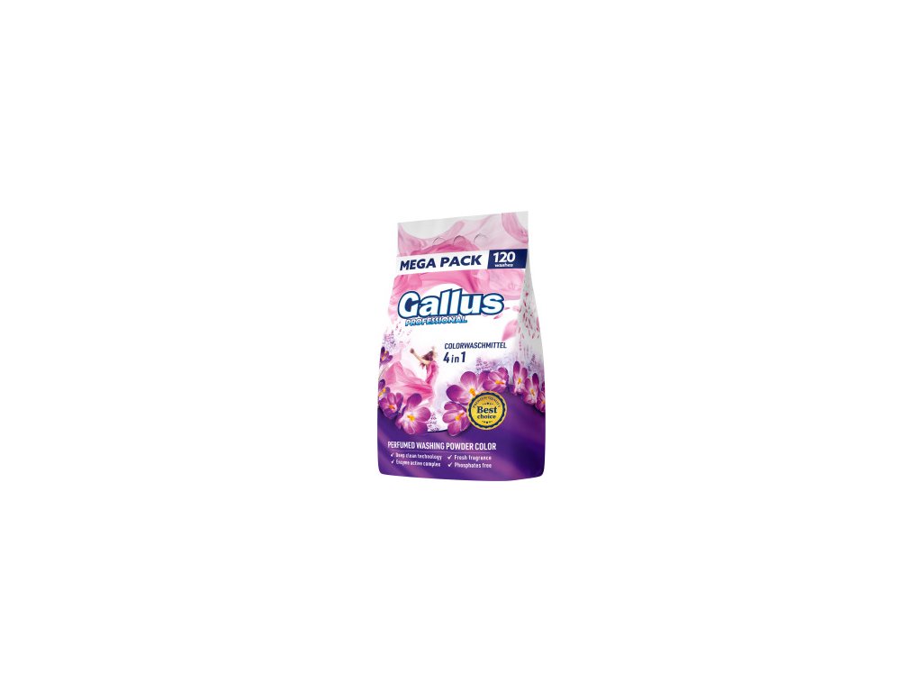 Gallus Color je kvalitní prací prášek vyvinutý speciálně pro péči o barevné prádlo. Díky své nové aktivní formuli účinně odstraňuje skvrny a zároveň chrání jasné barvy vašich oděvů. Prášek je vhodný pro praní při teplotách od 30?°C do 60?°C, což zajišťuje optimální výsledky při každém praní.