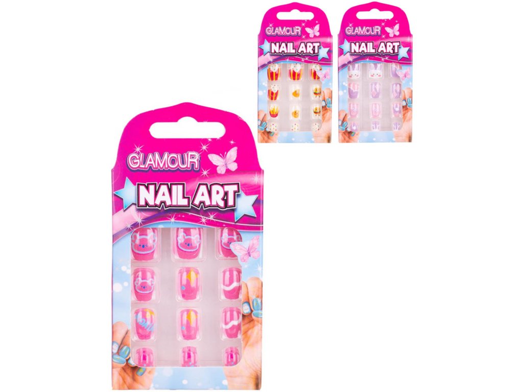 Glamour nalepovací dětské umělé nehty. Baleno po 12ti kusech ve třech variantách motivu.