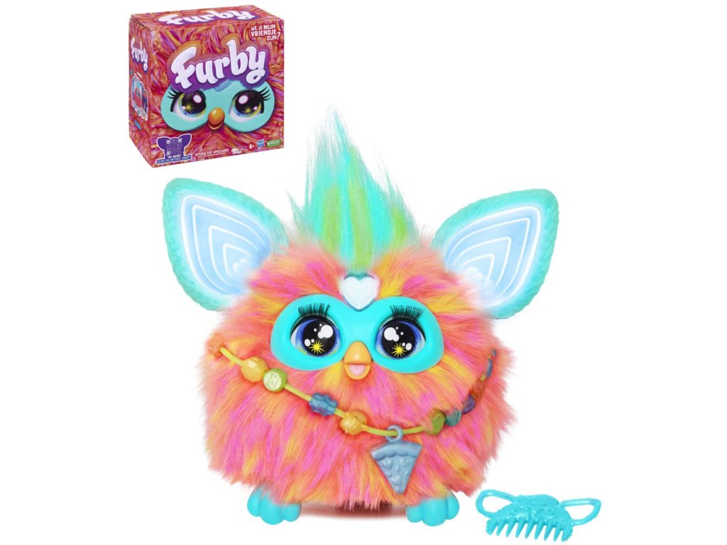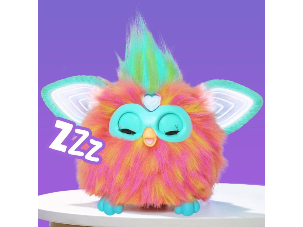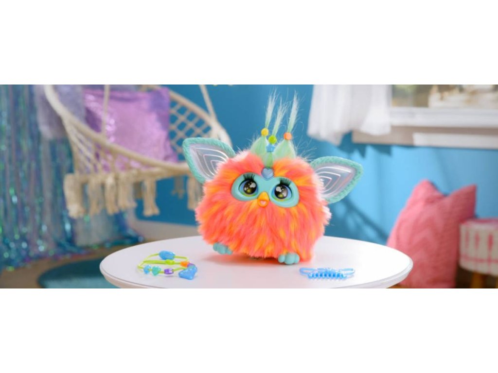 Interaktivní plyšové zvířátko korálový Furby od Hasbro, plyšák na baterie, se světlem a zvukem. Velikost 15cm. Různé herní režimy, pohyblivé části, zpívá, mluví, vykládá vtipy.