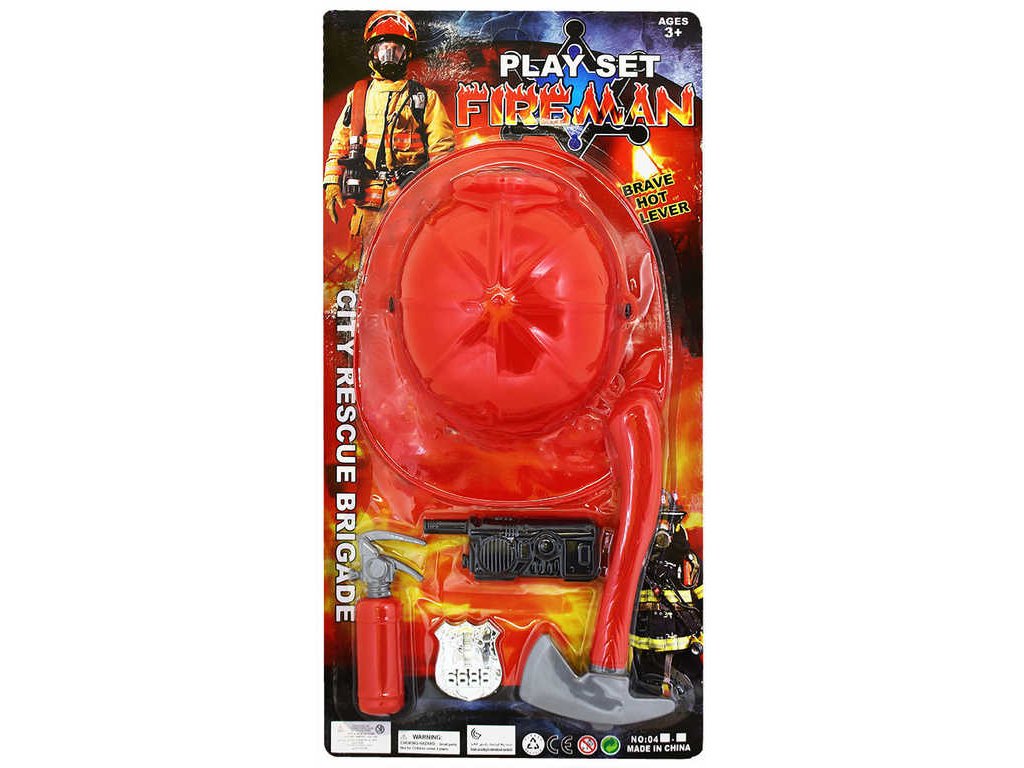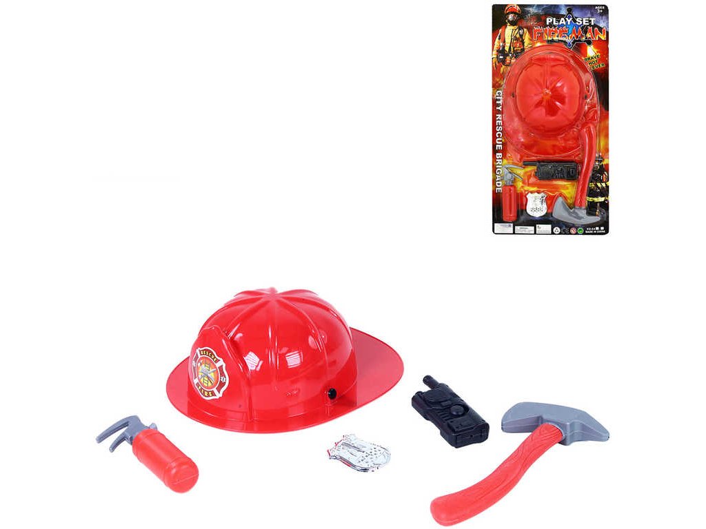 Vzhůru do záchranářské akce! Helma, hasičská sekera, hasicí přístroj, vysílačka a odznak, to vše se ti bude při hašení hodit! Všechny doplňky jsou vyrobeny z PVC. Praktický herní set pro všechny malé
