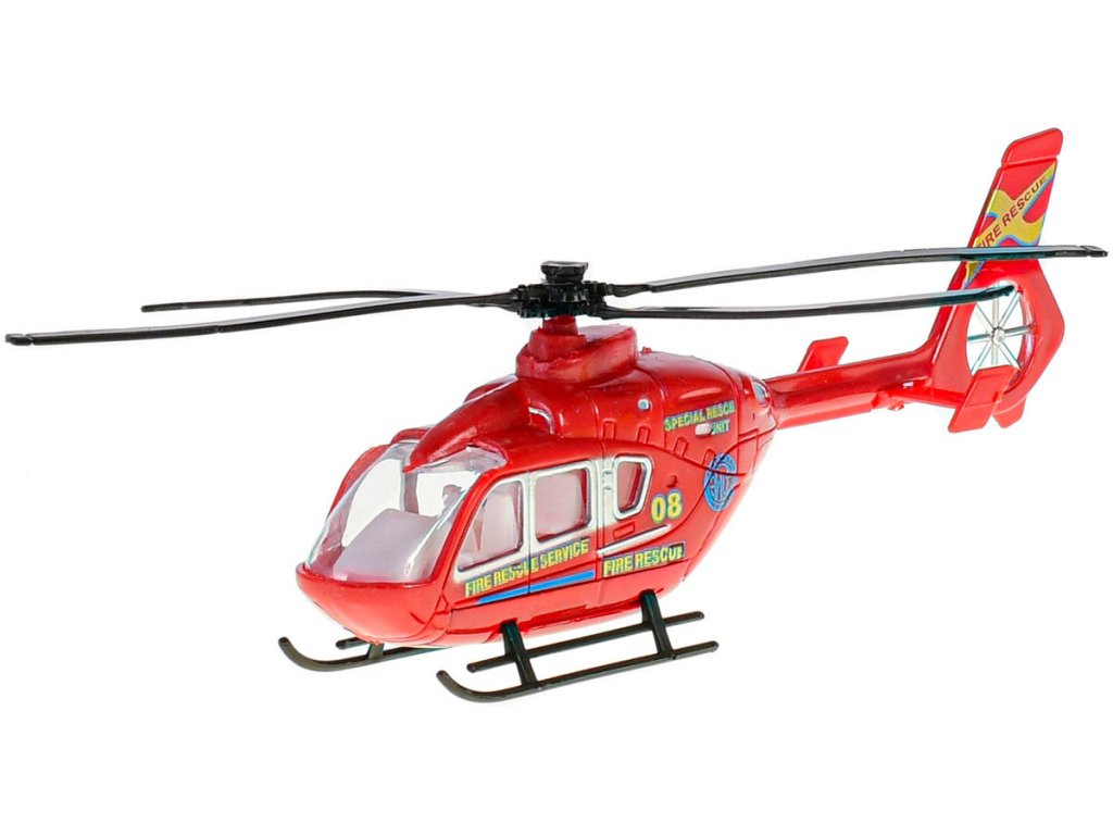 Kovový model helikoptéry ve třech variantách provedení (hasiči, policie), pro všechny malé hasiče a bojovníky. Baleno v krabici s průhledem.