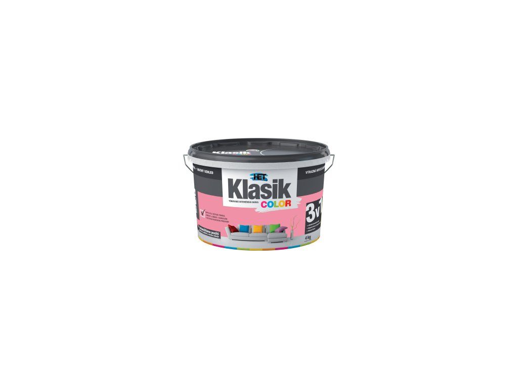 Het Klasic Color malířská tónovaná disperzní otěruvzdorná barva kterou doporučujeme pro obývací a komerční prostory, dětské pokoje, jídelny, chodby, kanceláře, prodejní prostory. Vhodná k nátěrům minerálních, sádrových a sanačních omítek, zdiva, betonových panelů a monolitů, sádrokartonových, sádrovláknitých a dřevovláknitých desek, papírových tapet k tomu určených, tapet ze skelných vláken apod.