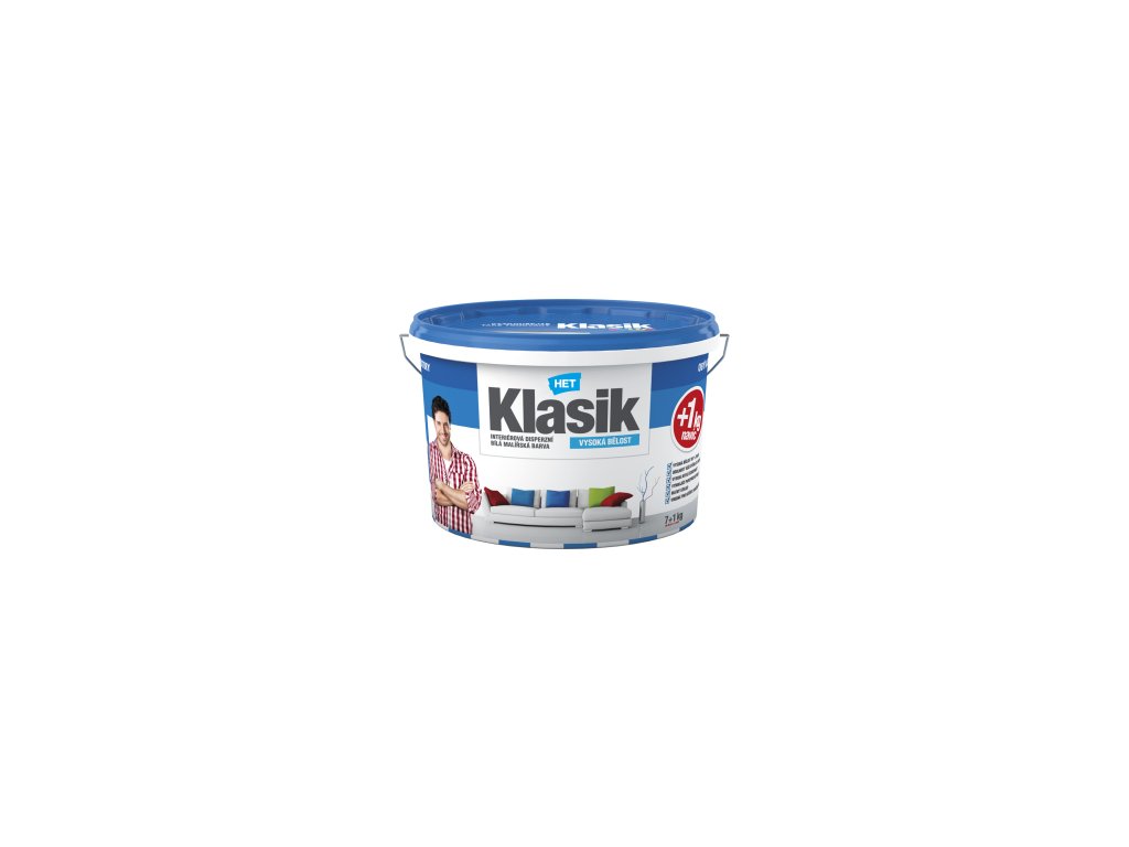 Het Klasik otěruvzdorný malířský nátěr, interiérová disperzní vysoce bílá barva. Doporučujeme pro obývací a komerční prostory, dětské pokoje, chodby, kanceláře, prodejní prostory.