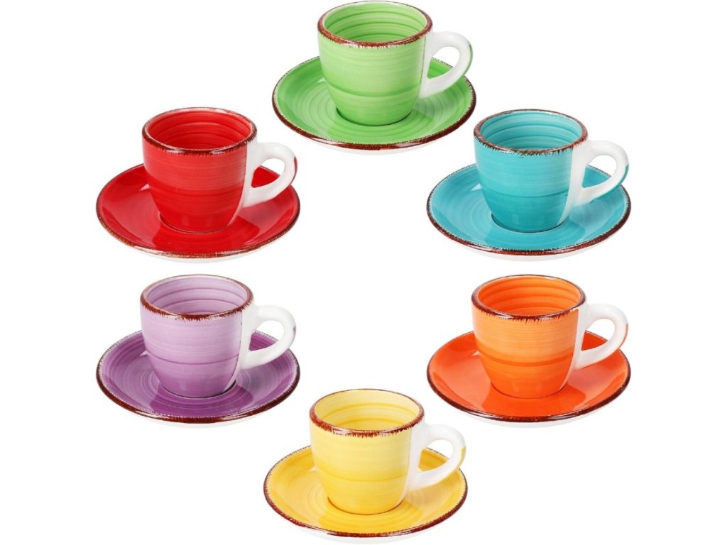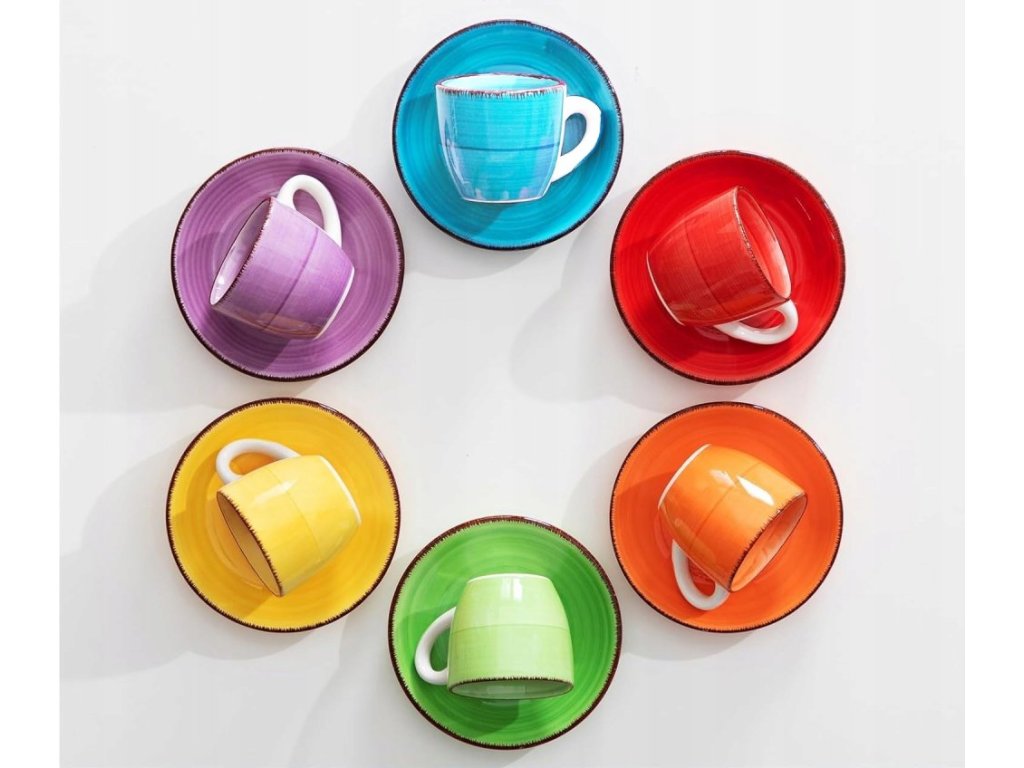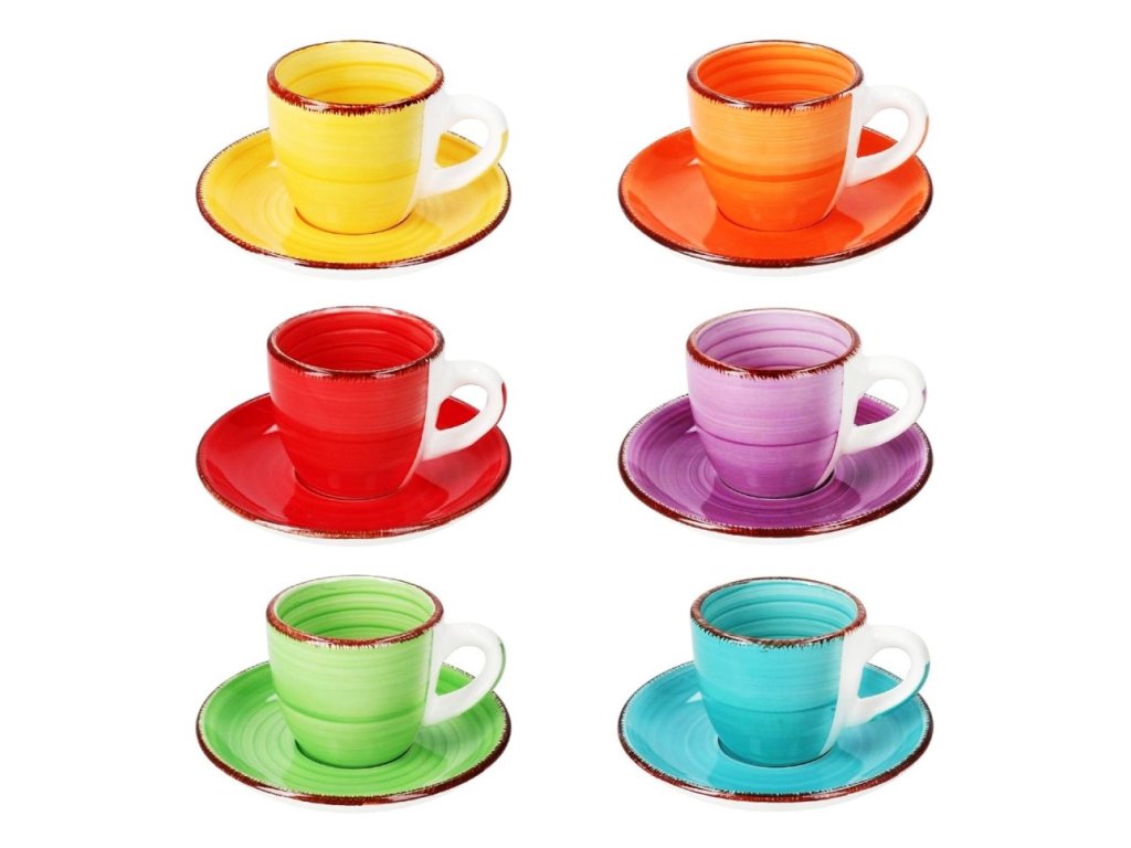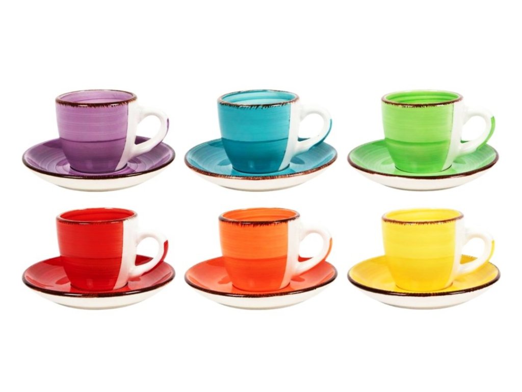 12 ks Keramická kávová souprava COLOURS - 6 x šálek na kávu + 6 x podšálek