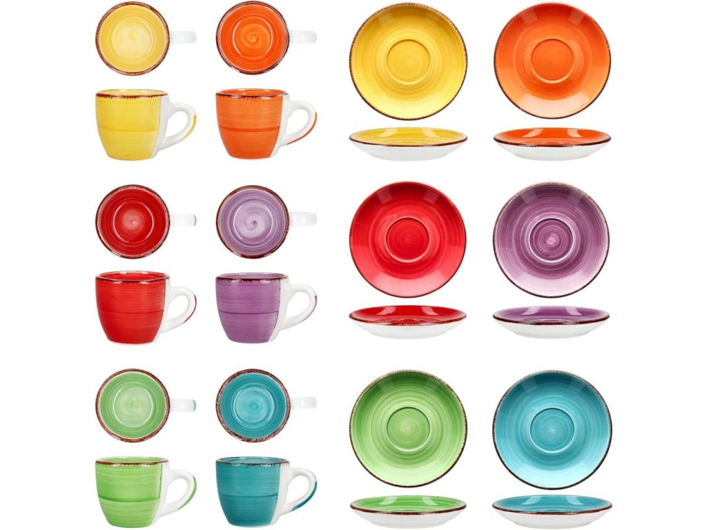HIT Hrnky na espresso s podšálky sada 12 ks 90 ml COLOURS HT-24326774