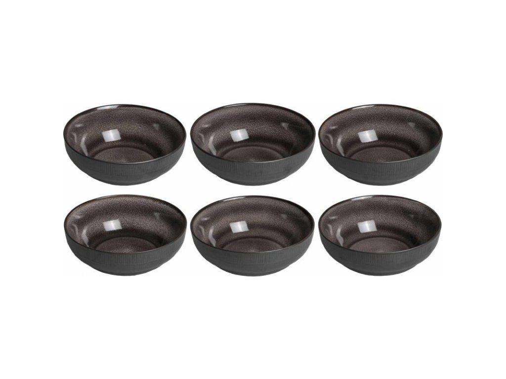 18dílná sada nádobí. S touto stylovou černou sadou se každá večeře stane zvláštní příležitostí. Glazura na této sadě dělá každý kus jedinečným. Nádobí je vyrobeno z kameniny a je vhodné do myčky. Sada je vhodná pro 6 osob.6 jídelních talířů O 27 cm 6 snídaňových talířů O 20,5 cm 6 misek O 17 cm