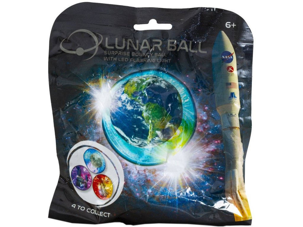 Vesmírný hopík v licenci NASA, skákací míček se třpytkami o velikosti 5cm. Balonek na baterie, se světlem. 4 varianty s překvapením (baleno v neprůhledném sáčku).