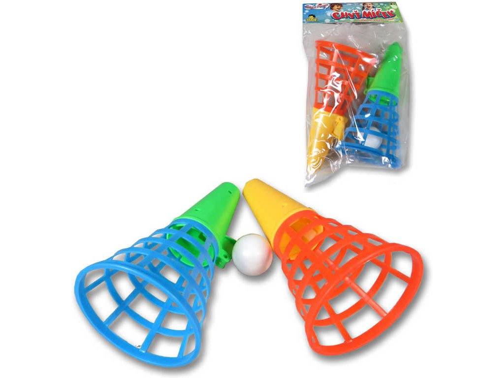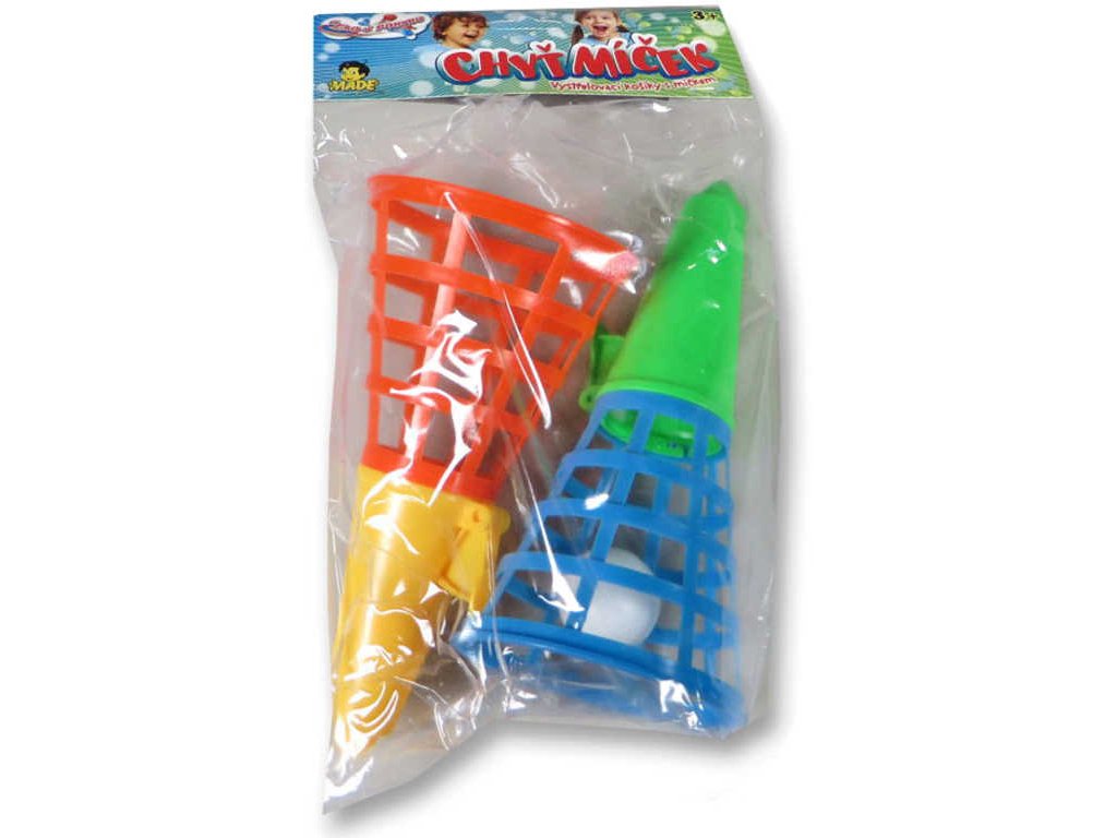 Zábavná hra nejen na léto, určená pro dva hráče. Jeden hráč míček vystřelí z košíčku a druhý ho pomocí druhého košíčku chytá.