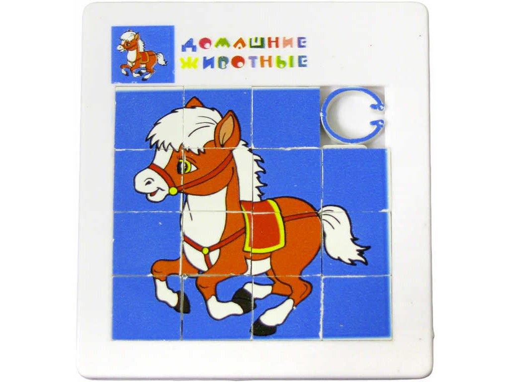 Klasický plastový hlavolam pro děti. Dokážeš poskládat přesouváním kamenů obrázek koníka, nebo kohouta?