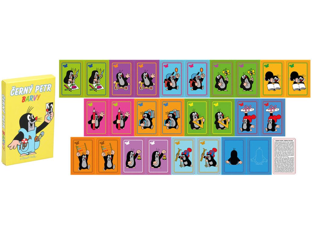 Karetní společenská hra karty Černý Petr v licenci Krtek (Krrteček): Barvy. 32 karet v papírové krabičce.