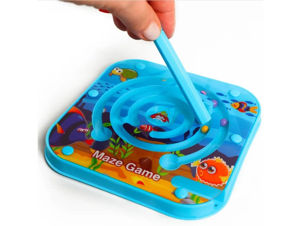 Hra kuličkový labyrint - bludiště s magnetickým perem, s motivem "mořský svět", o velikosti 13 x 13cm. 2 barevné varianty.