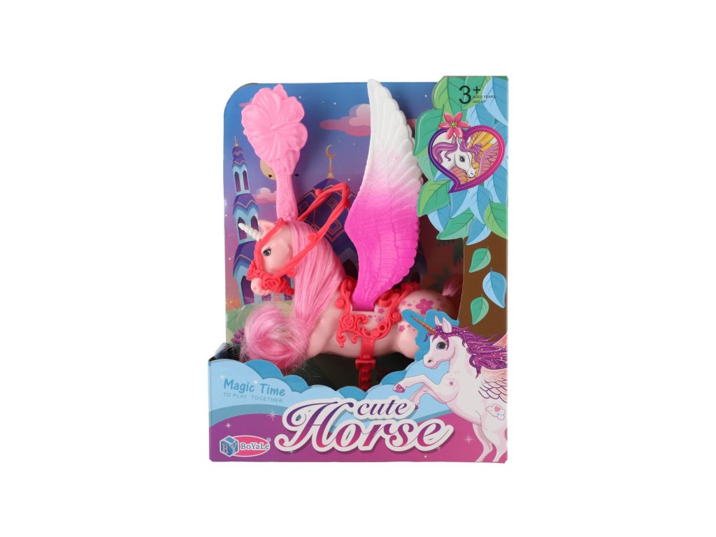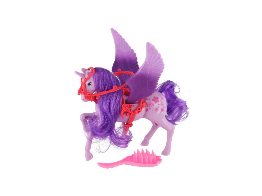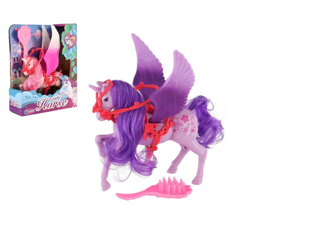 Jednorožec/kůň s křídly česací s hřebenem plast 22cm 3 barvy v krabičce 17x22x6cm