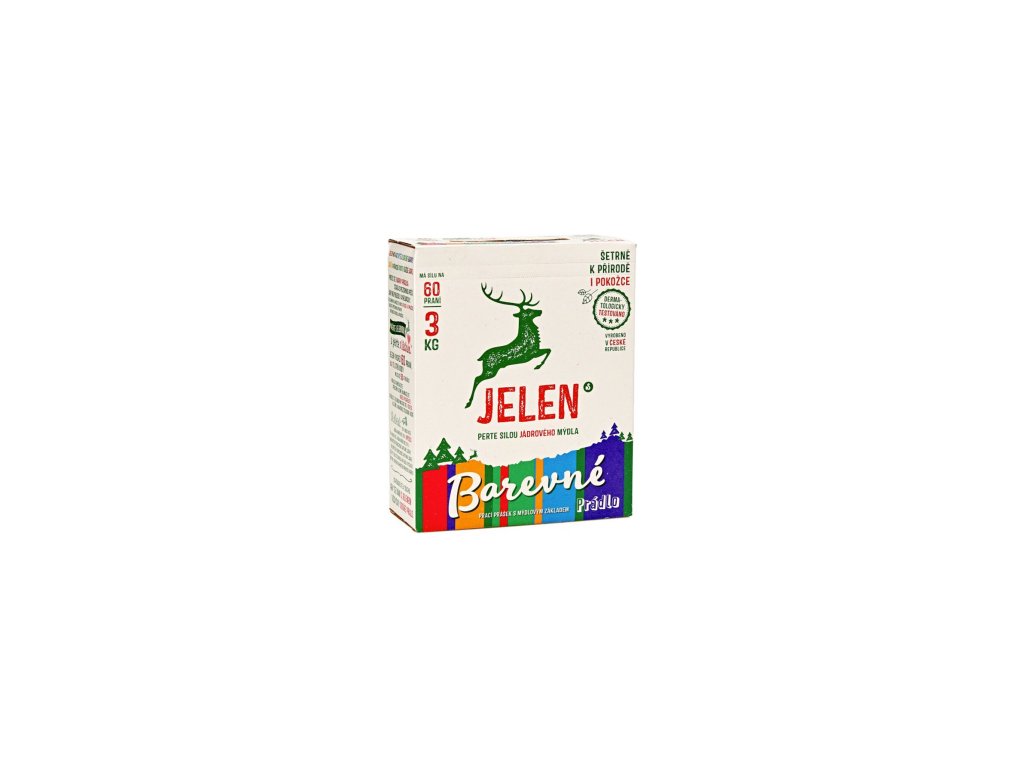 Jelen má rád syté a divoké barvy, jaké v přírodě uvidíte každé jaro. Proto se o barvy prádla stará s pozornou péčí, aby nevybledly a neuvadly. S Jelenem tak můžete prát v ruce i v pračce. Dbejte přitom na pokyny výrobců prádla a praček. Věřte Jelenovi a perte s láskou. Jelen vydrží 60 praní na 10 litrů vody mu stačí 50 g prášku. Prádlo nemíchejte, předem klidně namáčejte nebo vyvařujte. Prádlo s Jelenem máchejte v teplé, vlažné a nakonec studené vodě.