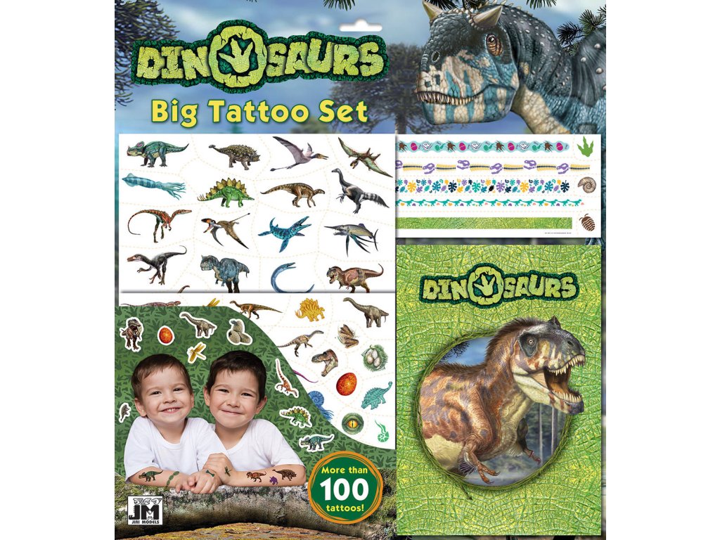 Velký set sešit s tetováním, s motivy Dinosauři. Set obsahuje více než 100 barevných tetování různých velikostí i motivů a sešit ke kreslení.