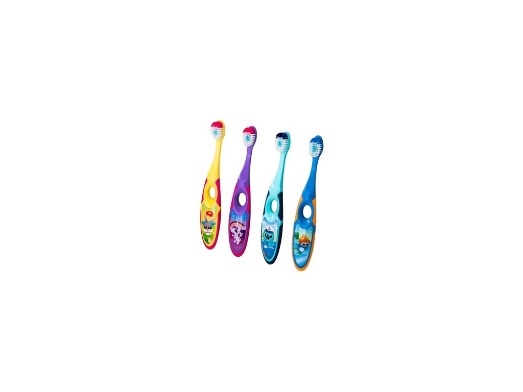 Kartáček má měkká vlákna, která jemně odstraňují zubní plak, a malou hlavici, která se snadno dostane i k zadním zoubkům. Ergonomická rukojeť se dobře drží malým dětským ručkám a barevný, hravý design děti motivuje k pravidelnému čištění.