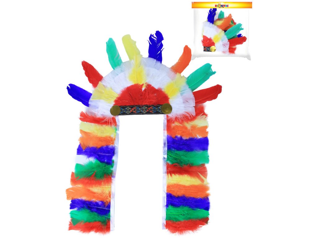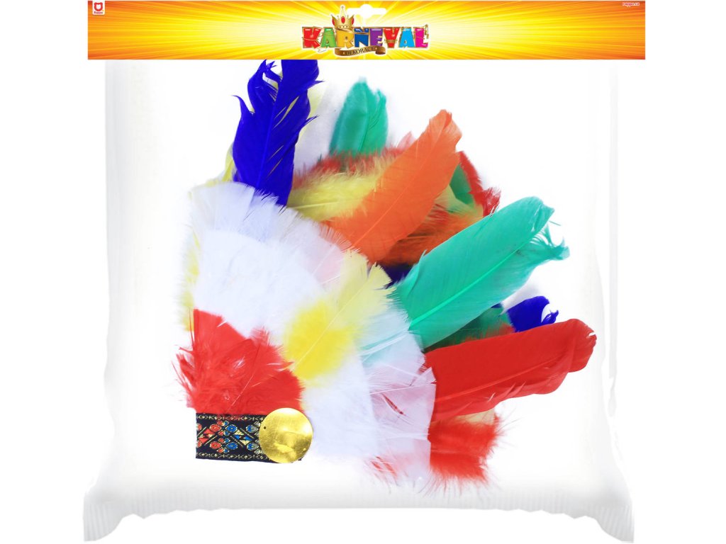 Senzační karnevalová čelenka pro opravdové indiánské náčelníky! Tento parádní kousek je zdoben barevnými hebkými pírky. Čelenka s indiánským vzorem je perfektním doplňkem ke kostýmu indiána. Baleno v sáčku.