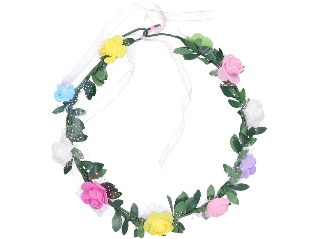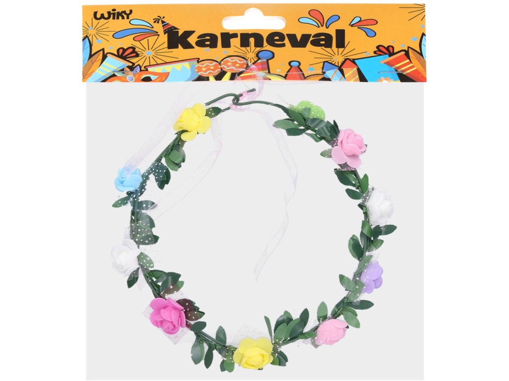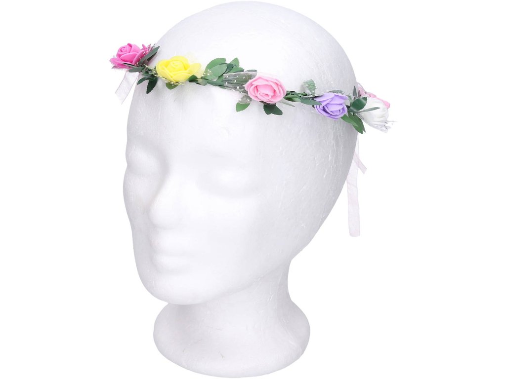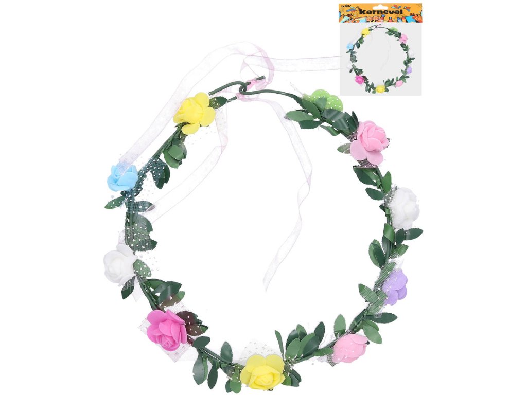 Květinová plastová čelenka s květinami (růže) jako karnevalový doplněk ke kostýmům. Baleno v sáčku.