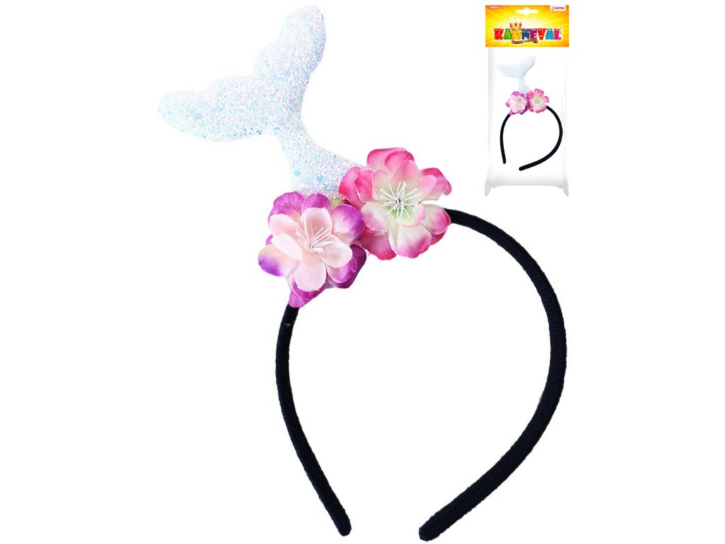Veselá karnevalová čelenka ve stylu mořské víly je zdobena třpytivým rybím ocasem a květinami. Ideální doplněk ke kostýmu nebo jen tak na párty!
