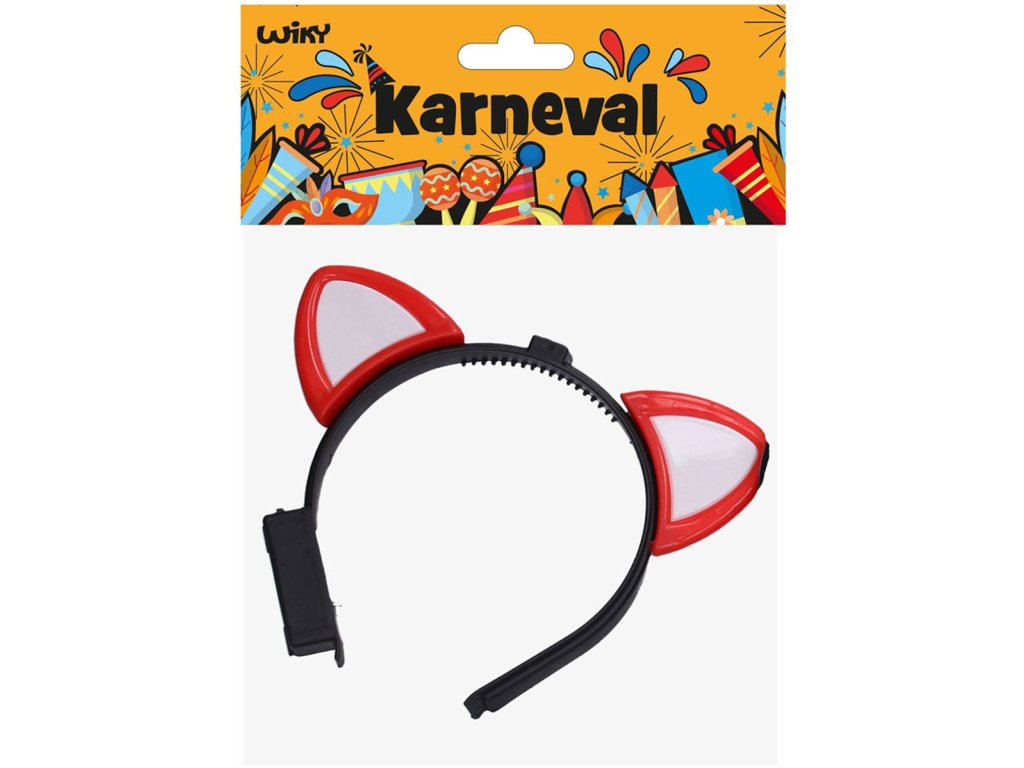 Plastová čelenka s ušima. Velikost 18cm, 4 barevné varianty. Vhodné jako doplněk ke kostýmu "zvířátko" na karneval. Uši na baterie, se světlem.
