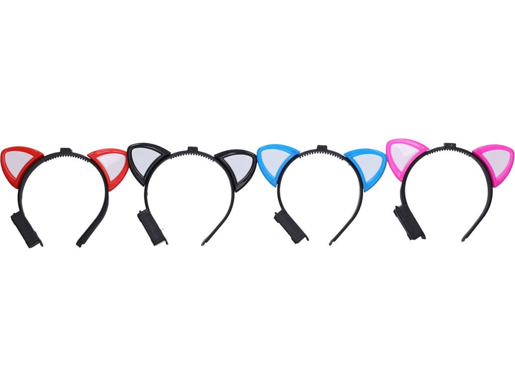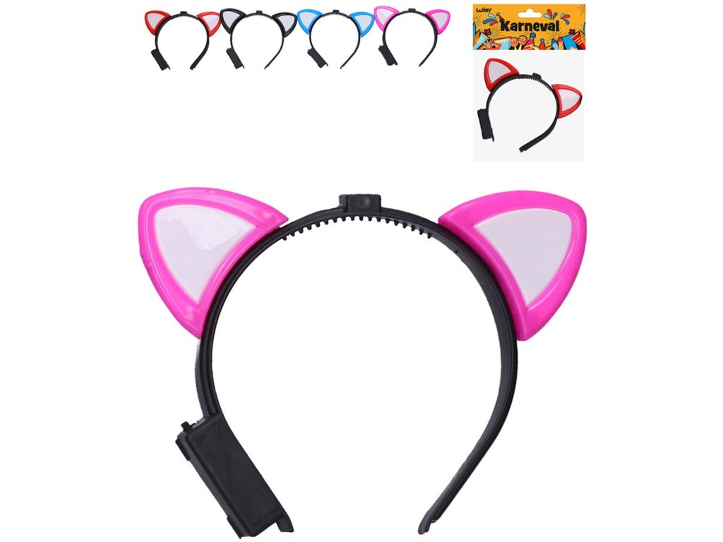 KARNEVAL Čelenka s ušima na baterie 4 barvy Světlo
