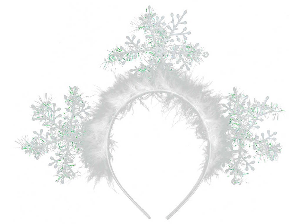 Nepřehlédnutelná korunka se sněhovými vločkami a bílým peřím je senzačním doplňkem na dětský karneval! Nasaď si ji do vlasů a vánoční večírek může začít!