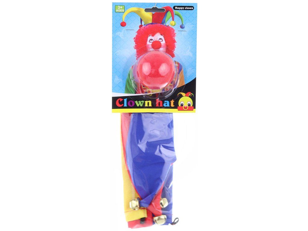 Karnevalový dolněk klaunův nos a čepice s rolničkami.