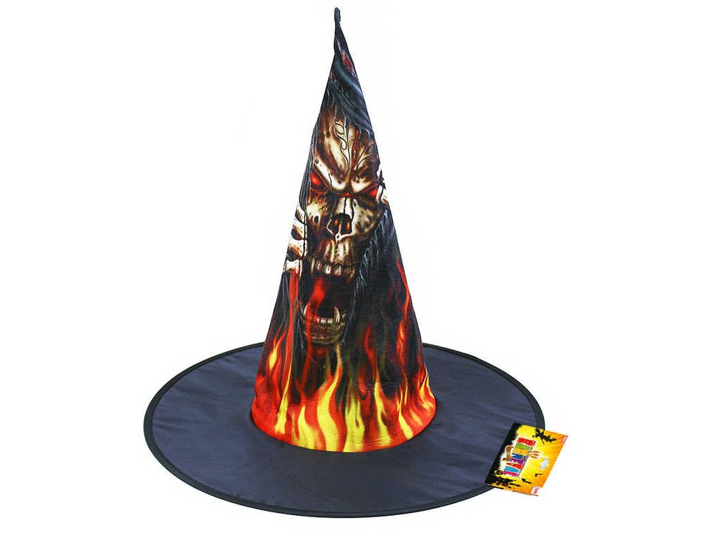 Čarodějnický černý klobouk s potiskem plameny a zombie pro dospělé! Staňte se hvězdou karnevalového večírku díky tomuto nepřehlédnutelnému klobouku a ohromte tak všechny své přátele!