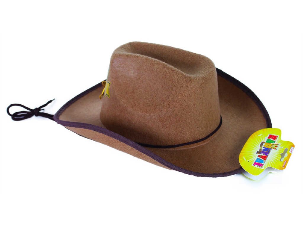 Stylový, hnědý klobouk pro všechny malé kovboje! Klobouk hnědé barvy je zdoben zlatou šerifskou hvězdou a doplněn nápisem SHERIFF. Součástí klobouku jsou také šňůrky. Šerifská hvězda (odznak šerifa).