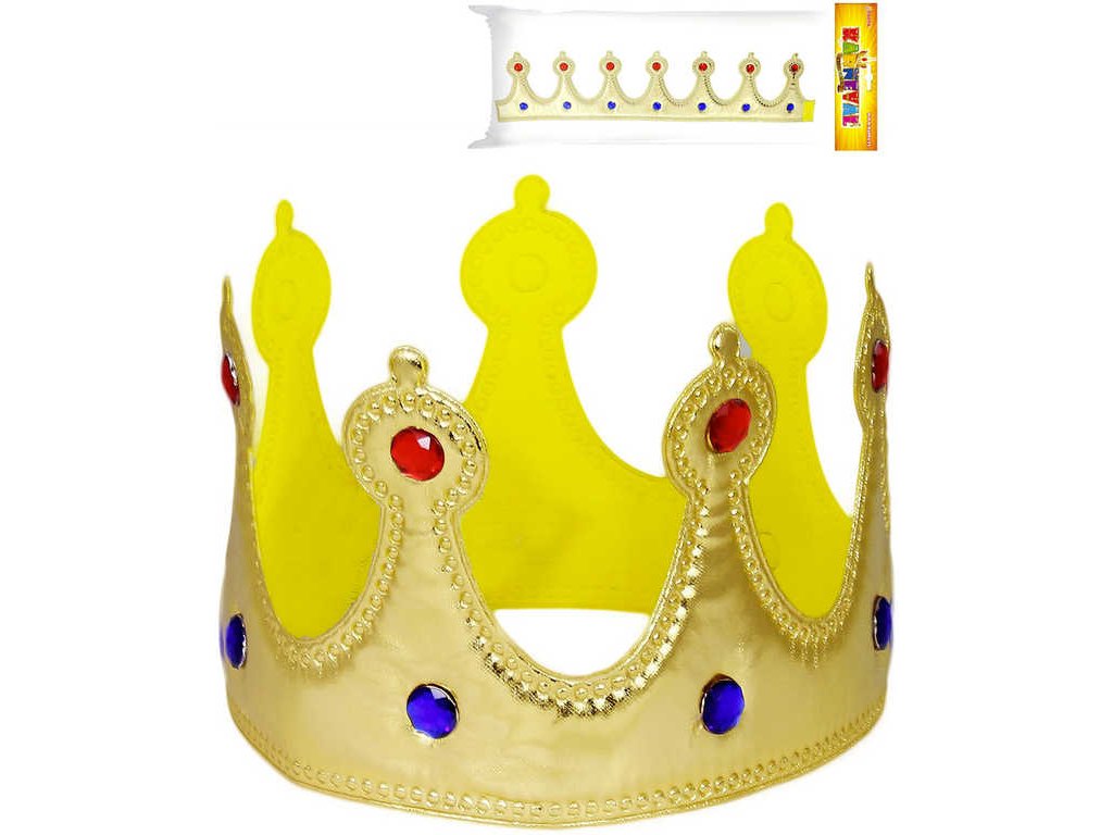 Karnevalová královská koruna, látková, zdobená kamínky. Na suchý zip. Baleno v sáčku.