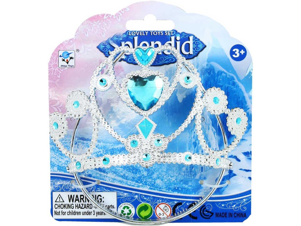 Krásná korunka pro sněhové princezny. Korunka je zdobena modrými prvky a nepřehlédnutelným ozdobným kamenem uprostřed.