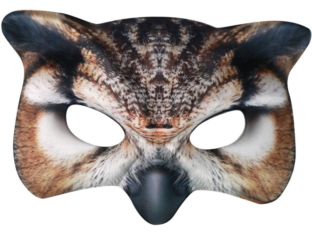 Senzační látková obličejová maska na gumičku (škraboška) sova je parádním doplňkem ke karnevalovému kostýmu.