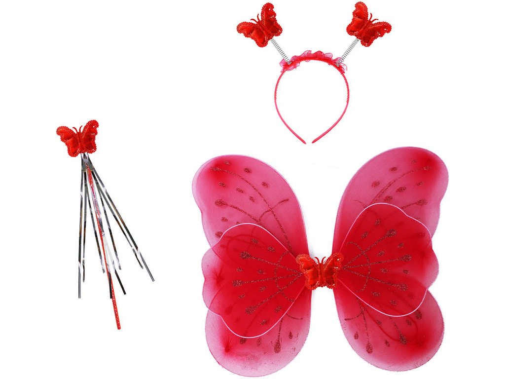 KARNEVAL Motýlí křídla s čelenkou a hůlkou červená *KARNEVALOVÝ DOPLNĚK*